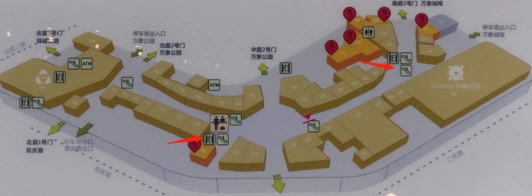中大型综合商业Mall主入口的门厅宽度不小于6m,主要出入口门厅附近走廊宽度建议12m~15m,入口大堂对商业Mall是重要的空间形象指标,应有明显易辨的特性,对外部环境要有一定的视觉形象冲击。