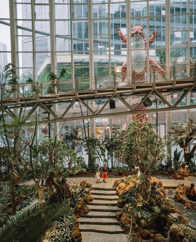 而位于森林中央15米高的生命树(凤凰木)与高达20多米的“花之瀑谷”、40米的高空“悬浮森林”共同构成3大主题场景及18处互动打卡景点,跨层分布于7层商场内,将商业和自然“无界”交融。与消费者一起期待花开。