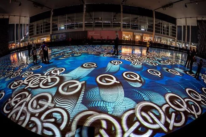 比如,在英国的米尔顿凯恩斯小镇上,安装了一个互动式的虚拟现实装置,名字叫做“魔法地毯”。游客们可以在这万花筒般的地毯上自由行走,地毯的图案会随着游客的走动而发生变化。