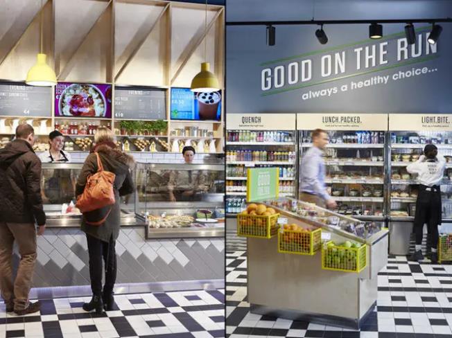 食品区域成为了设计重点,CENTRA 想要变成一个可以给予顾客 24 小时便利的空间,无论是去吃早餐和便利午餐,以及买个牛奶或是打包食物回家。