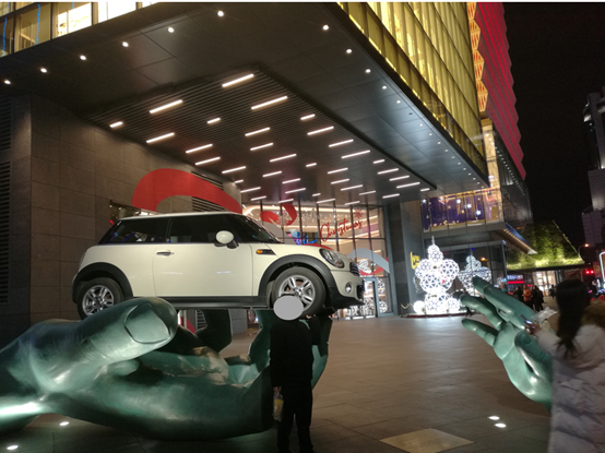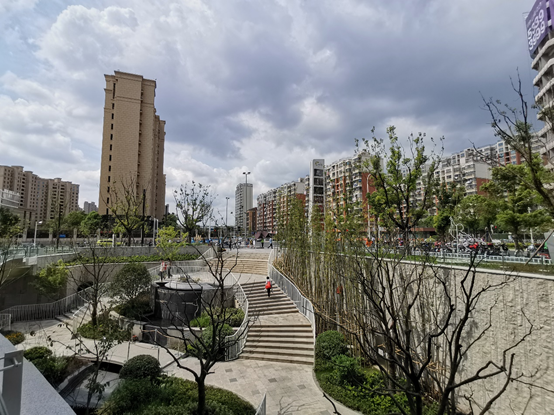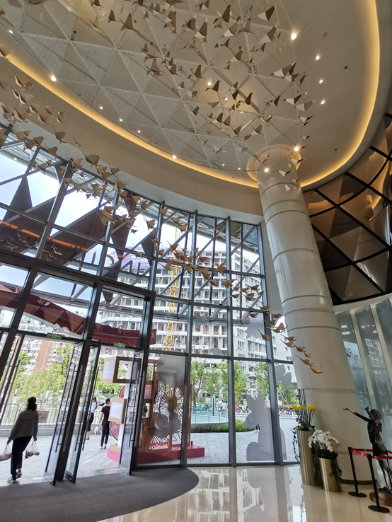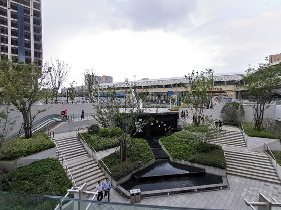 目前入口广场的景观更多的是通过下沉式广场来体现,本书下沉式广场的一个功能就是为了负一层的导流,设施景观打卡点也是实现这一目的。另外虽然下沉式广场有楼梯,但最好要再设置一组扶梯,毕竟大家普遍不愿意走楼梯。