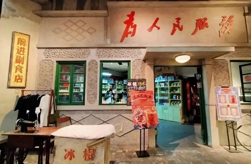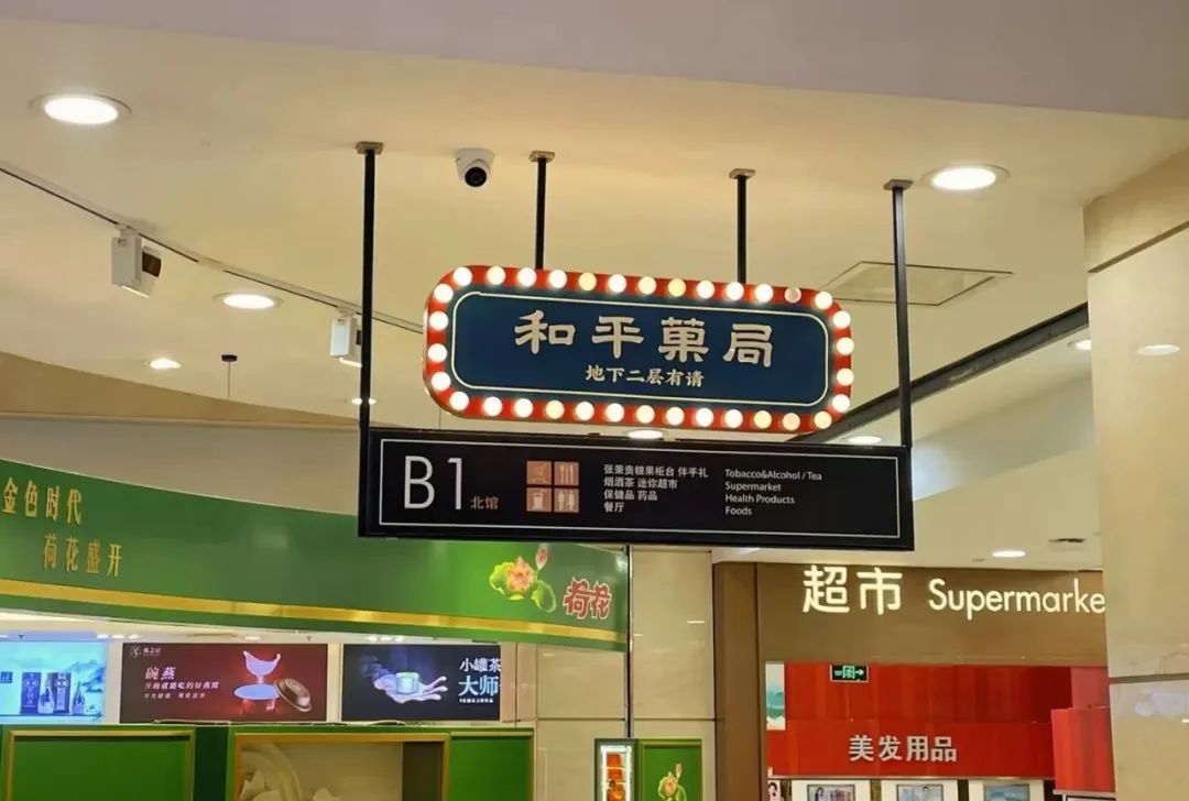和平菓局位于王府井百货地下二层,通过引入戏精学院、上新故宫等文创IP资源,还原了上世纪60~80年代老北京胡同的生活场景,打造成如今沉浸式商业体验空间。