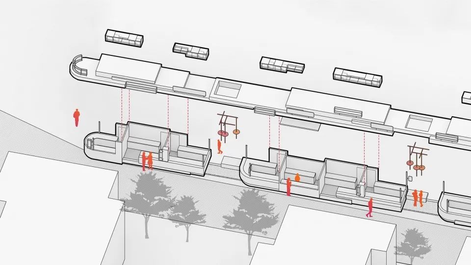 对小街属性的重新定义,促使设计师对小街的空间格局进行重新梳理,并运用景观的手段缝合街道两侧和连接整个城市片区。