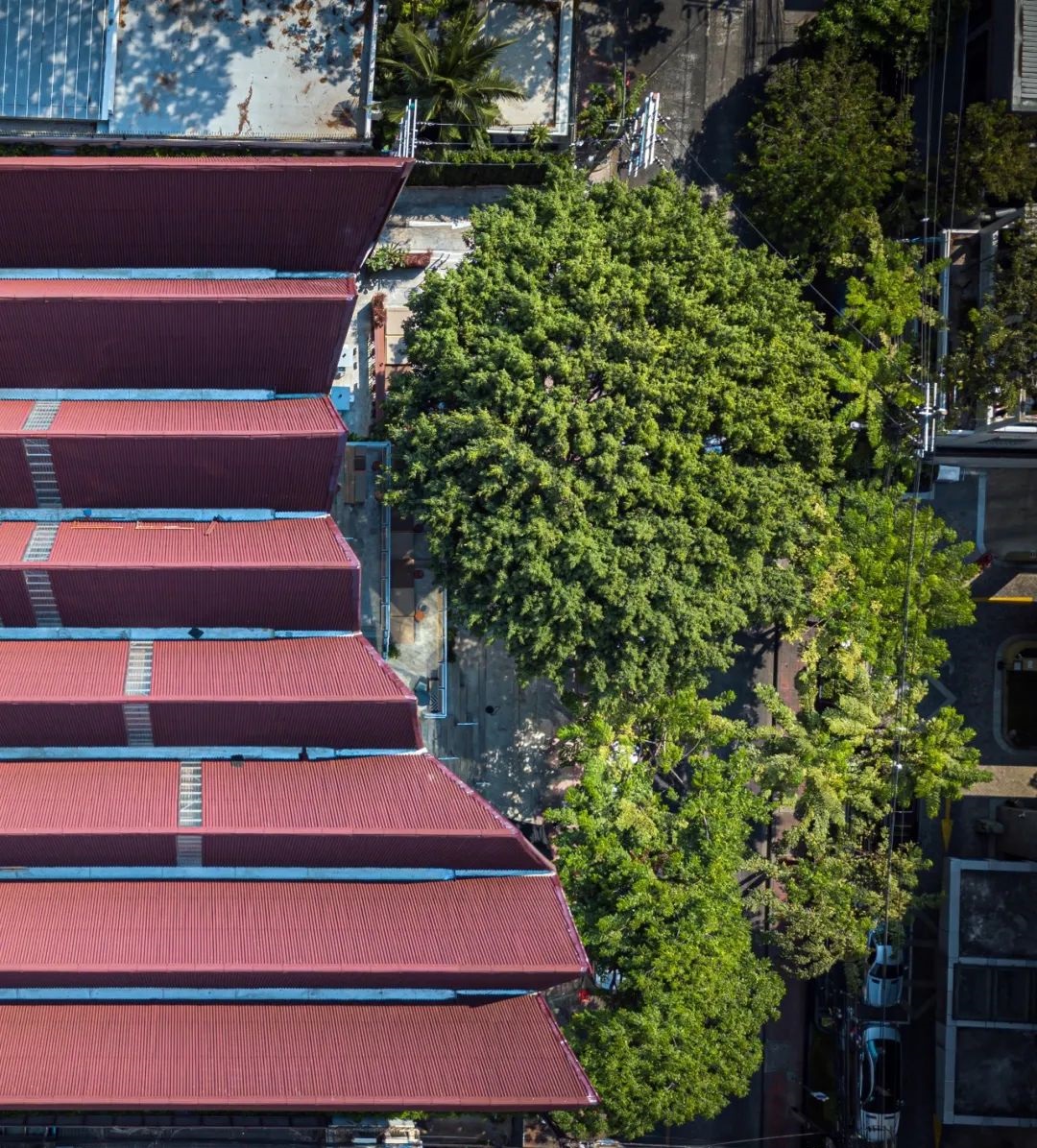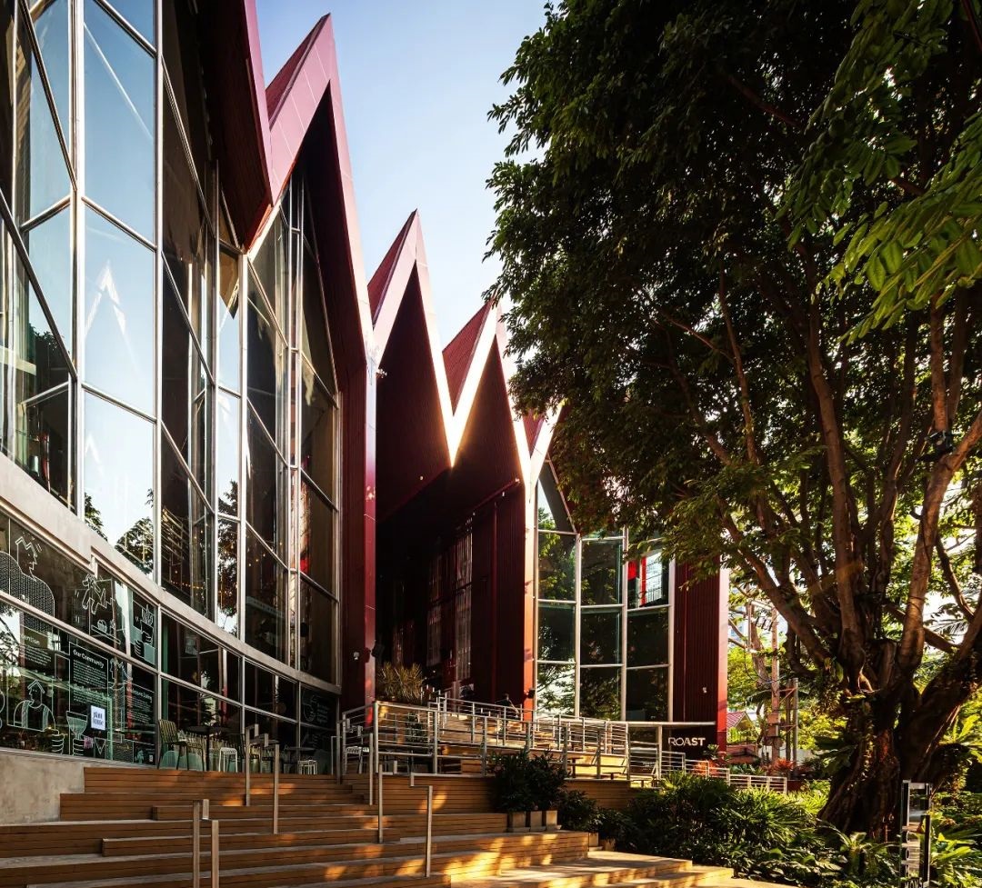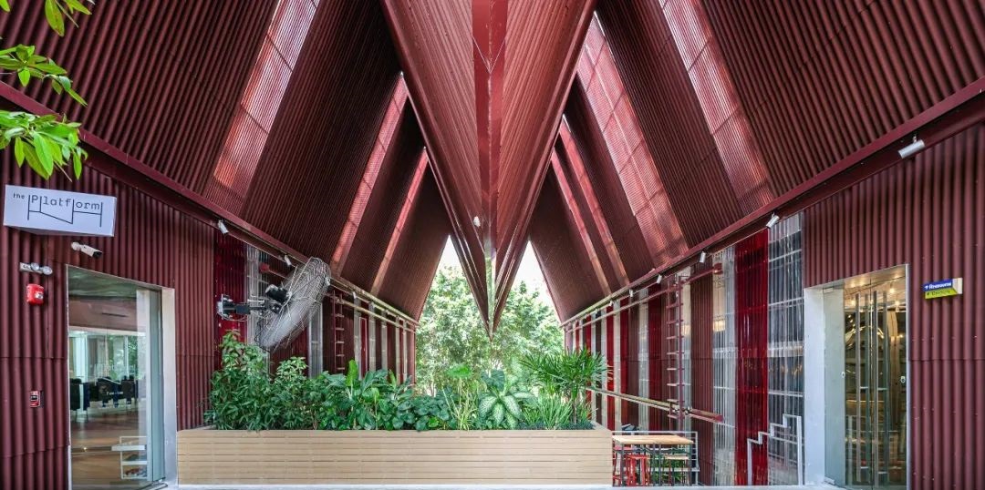 一百年前经过曼谷Saladaeng区的铁路是该国第一条铁路的一部分,在那时火车站红色的屋顶在绿油油的稻田中尤为瞩目。而项目正是坐落在今天这片充满活力区中,这段历史也成为了该设计的重要灵感来源。