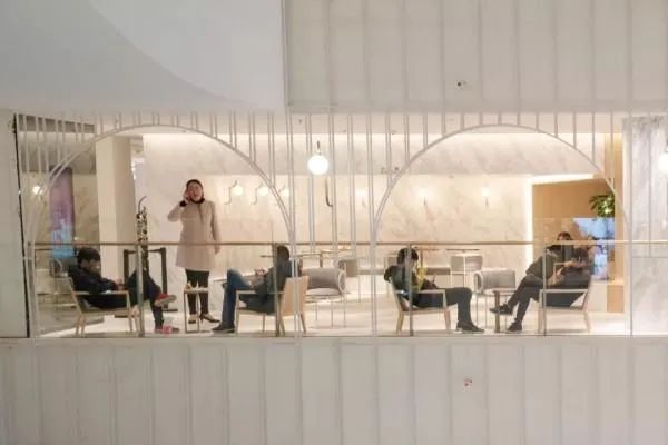 商场的改造升级打破了传统商场明确划分层次功能空间的设计,而是将内部空间完全打开,每层都有公共休息区,以及如包间一样的露台,消费者可以观看到商场全貌。空间开阔的同时,还处处充满艺术气息。