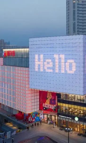 比如成都中海天府环宇坊,设计灵感源于“魔方”。与传统的商业媒体宣传相比,中海天府环宇坊新一代媒体立面的运用,整合商业时效性与科技灵敏性。取消在传统封闭型 “盒子”建筑上悬挂、外摆、粘贴广告的方式,代之以动态灵活、强互动性的多媒体立面,实现线上线下互动,品牌形象、商业信息实时更新推广,创造了线上线下交互建筑的创新尝试。