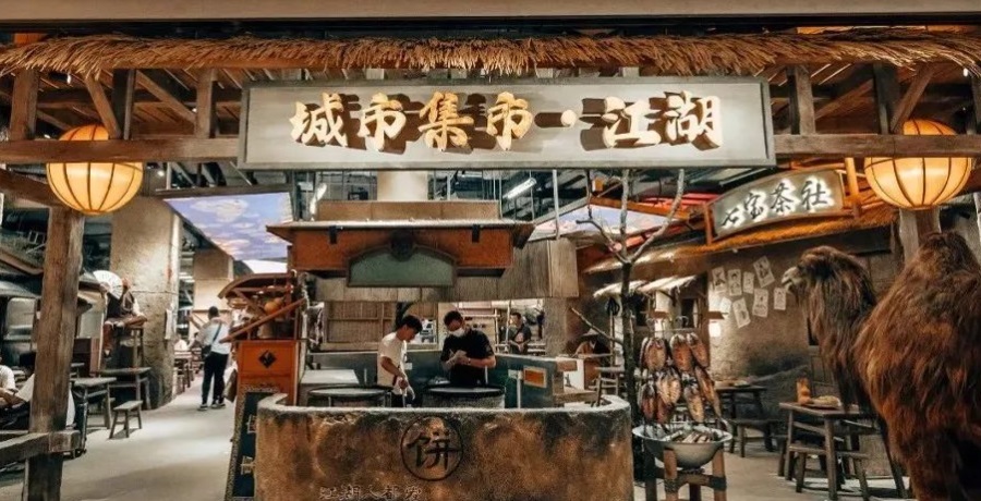 在上海太阳宫,打造了一个名为“城市集市·江湖”的沉浸式主题场景街区。