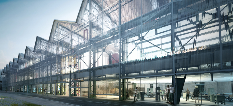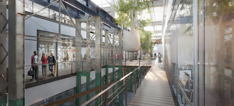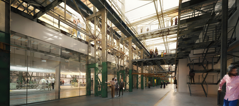 新的三层大厅采用锯齿形屋顶线,其操作和材质都是透明的:包裹在钢框架半透明包层中,内部空间完全被自然光照亮。这种内部和外部之间的模糊导致了一条“内部街道”,一条宽阔的循环路线,连接大厅内的许多功能,并作为现场不同建筑之间的连接器。