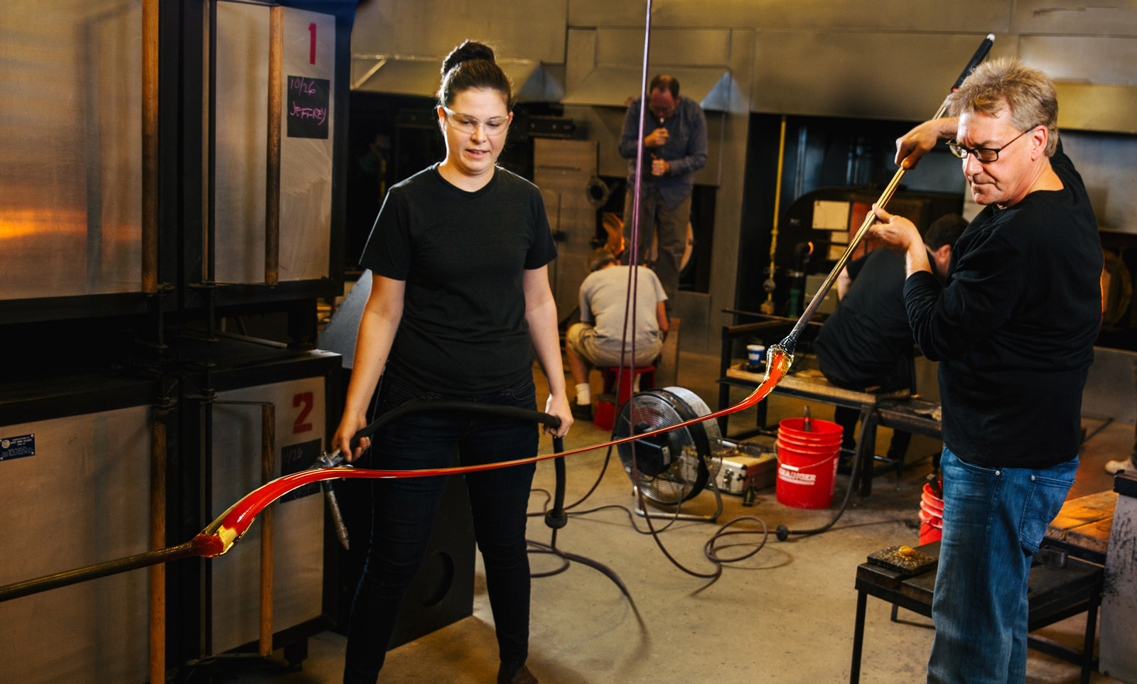 至于枝形吊灯,这个概念最初是作为整个 200 英尺长空间的统一因素。 这是一个吸引社区参与的绝佳机会,这也是一个统一整个市场的设备。” 设计枝形吊灯,并制作手工吹制的地球仪。值得注意的是,通过手工吹制的玻璃,会感受到玻璃世界中任何机器制造或工厂制造的艺术都无法与之媲美,对于这款吊灯来说,“默认情况下,每个地球仪都是独一无二的。作为鼓风机大师,亚当可以将某些品质带入不同的作品中:有些比其他作品更强烈,而另一些作品则具有装饰性。这一切都是以一种充满激情、动力十足的方式实现的。