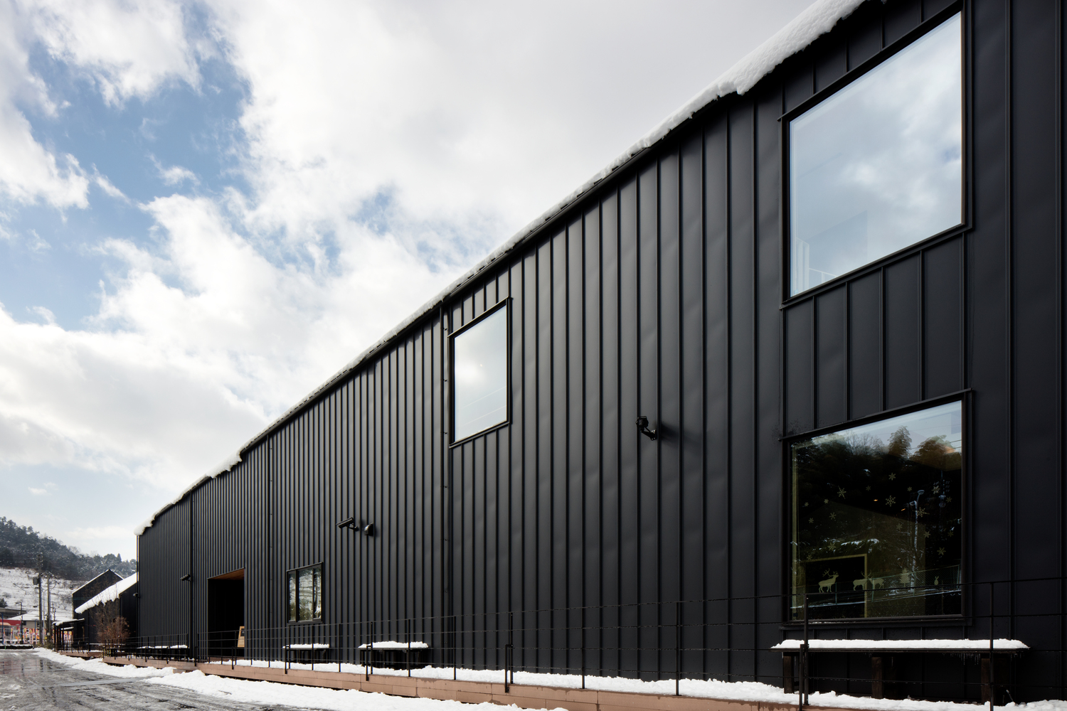 三角形屋顶的设计非常简单直接,表达了“房屋”的意思,也与周围绿意盎然的环境相得益彰。与通常的住宅展示形式不同,设计它是为了能够感受到木屋建筑的技术,这是商人的主要业务,也是公司的特点。虽然由于法律问题而削减成本和时间是有意义的,但通过分离建筑物,将其布置成符合场地后方河流的形状,它使与场地的统一感更加浓密,这是考虑到它与汽车快速行驶的前路保持距离,成为一个令人放松的地方的结果。