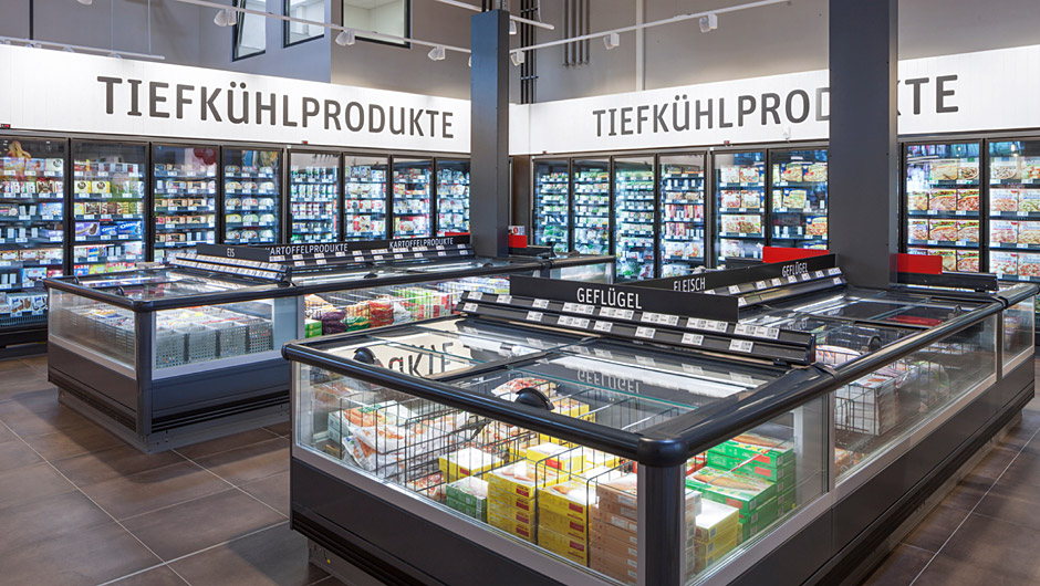 乳制品以节能的方式完全在玻璃后面展示。门自动关闭。与便利家具一样,不同的产品类别也清晰突出