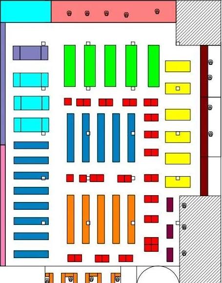 得知这是一家超市后,非常欣慰,毕竟这个地段还是可以的,周边有两家综合医院,还有一家口腔专科医院,周边有大型的居民社区,而且还位于城市主干道的一侧,好好做,生意还是有一定的前景的。在装修期间,我就去看过,觉得在装修的氛围方面还是可以的,今天五一节试营业,进去看了下,把大体的布局图描绘下来,如下,发表下自己的一点看法。