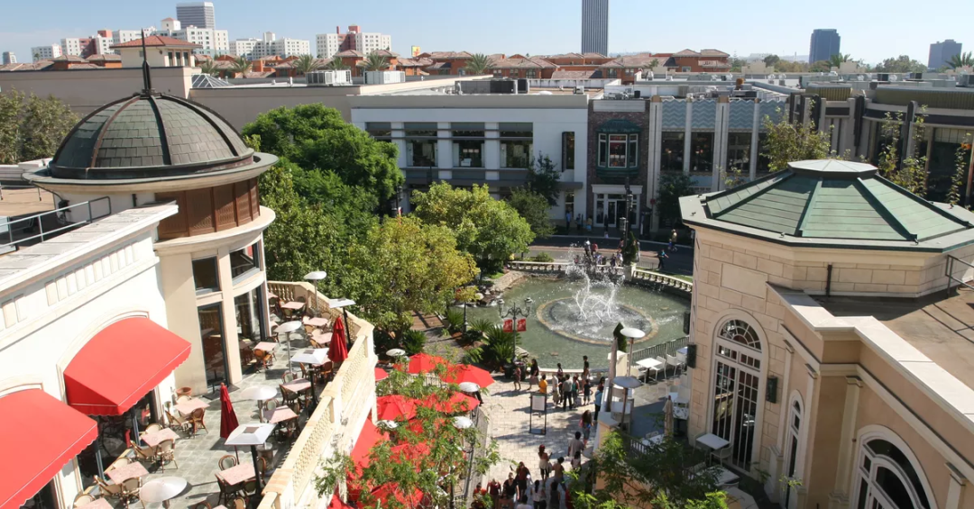 在美国加利福尼亚州洛杉矶市著名的 The Grove 购物街区,外摆已经是临街餐厅的常规操作。消费者可以在就餐的同时享受加州的阳光,欣赏购物街区内精致的花园场景。