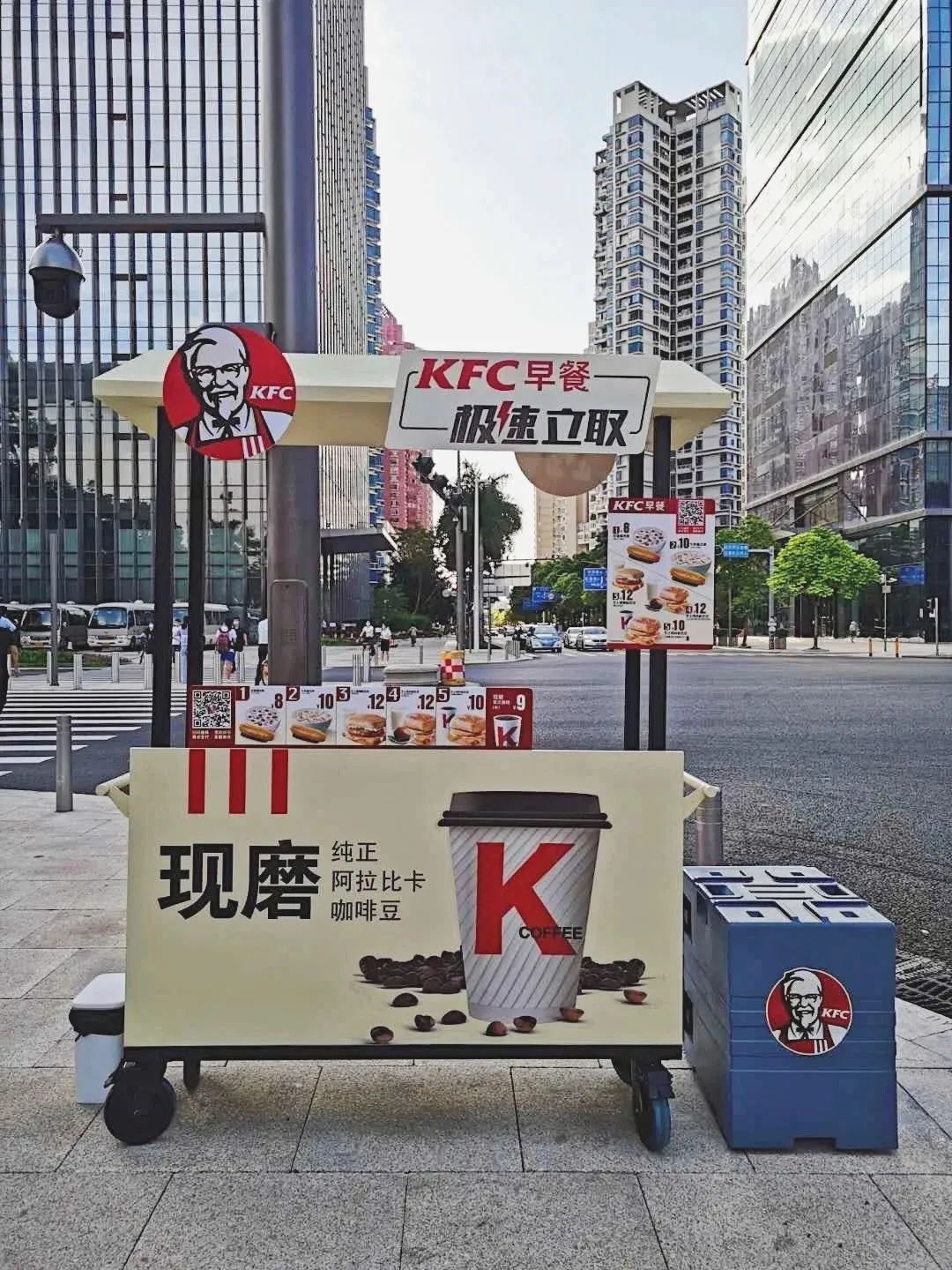 此次国内“地摊经济”成为话题之后,许多品牌参与到摆摊之中,其中,茶饮和快餐品类较为常见。从喜茶、肯德基等品牌晒出的“练摊”照中,可以发现它们多采用小推车进行售卖。